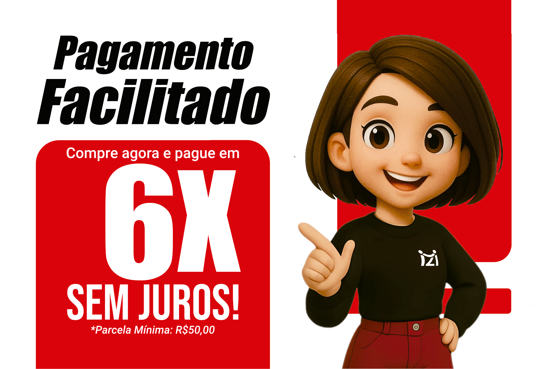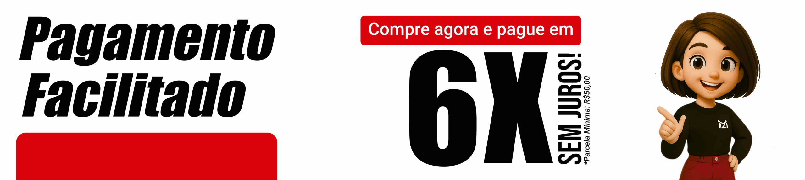 Pagamento facilitado: 3% de desconto via PIX ou parcelamento em até 6x sem juros no cartão.
